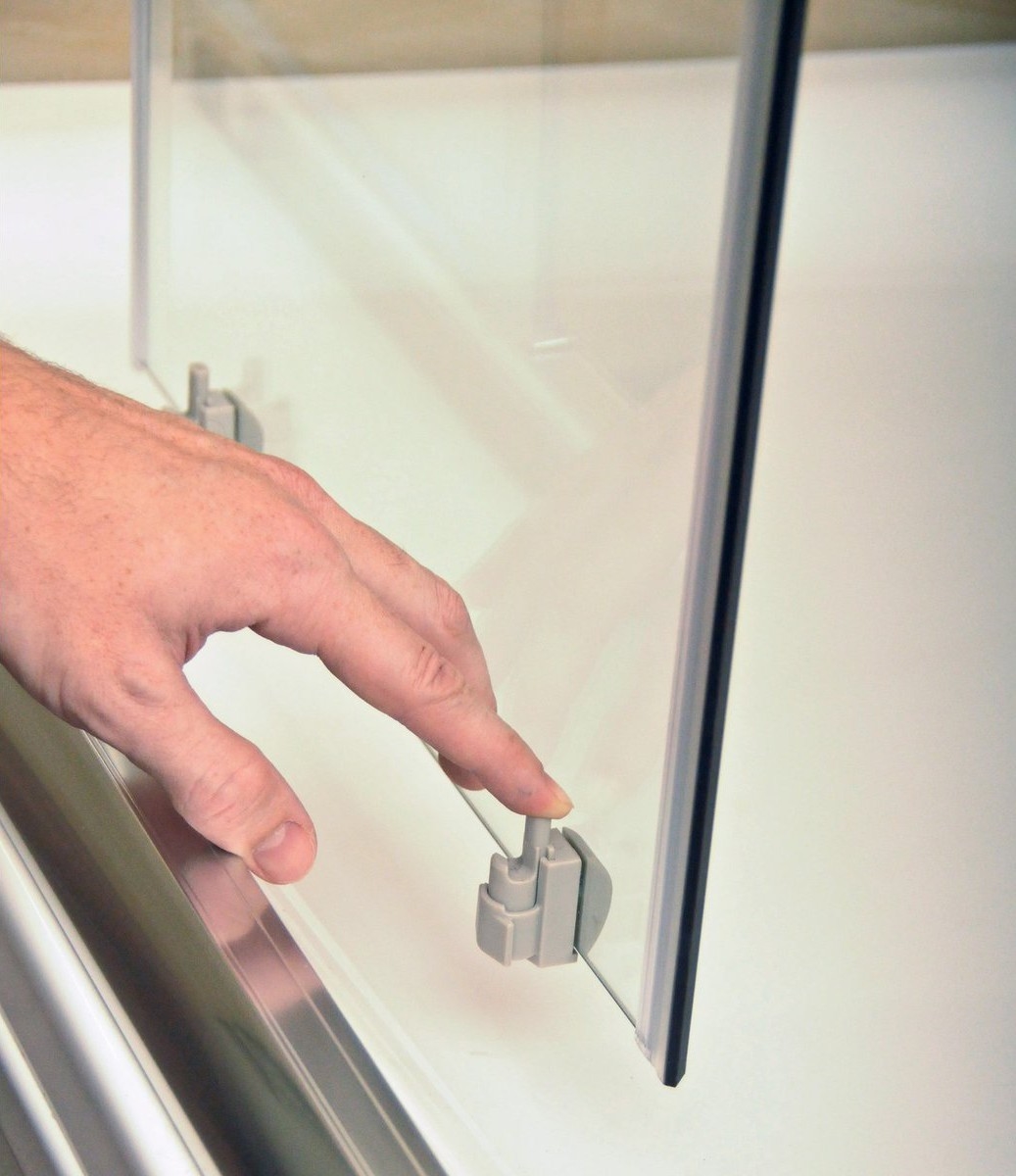• Konstrukcijo sestavljata dva trdna ravna dela in dva ukrivljena dela kot drsna vrata, ki zagotavljajo gladko in tiho drsenje ob odpiranju.