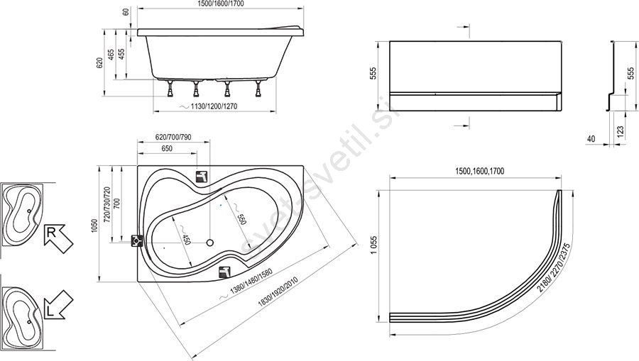 Asimetrične kopalne kadi, Kopalne kadi, Kopalnica, Kotne kadi, Ravak, Znamke