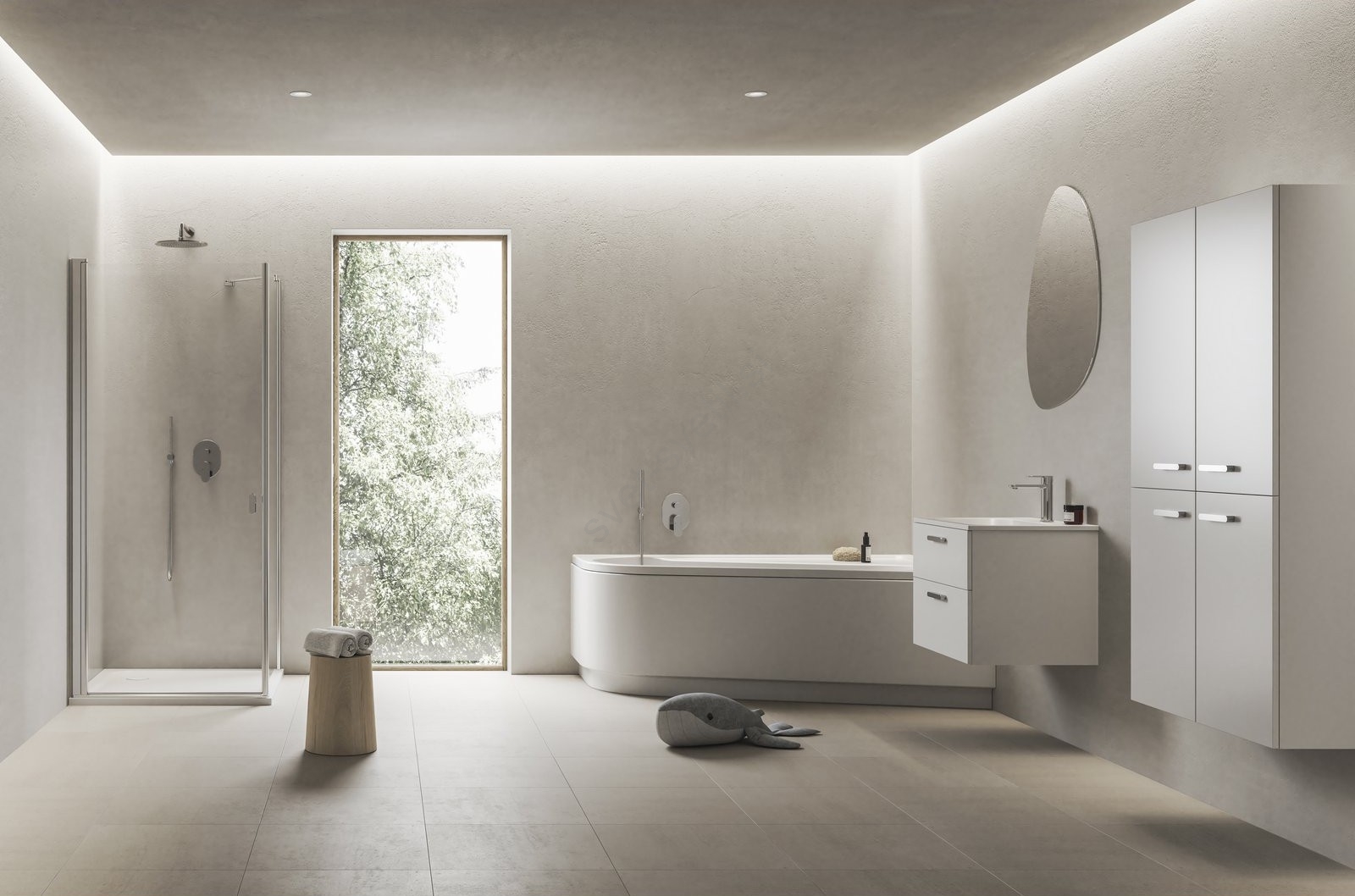 • Desna izvedba omogoča orientacijo proti prostoru kopalnice, s čimer optično poveča prostor in ustvari prijeten občutek odprtosti.