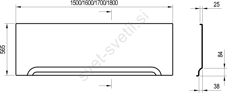 • Za sprednje oblaganje pravokotnih kadi dolžine 170 cm.