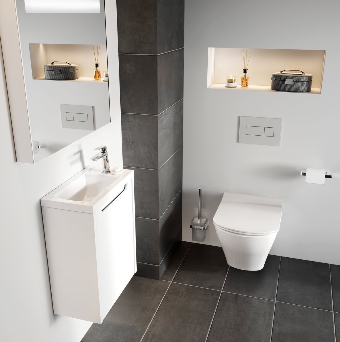 • Za popolno funkcionalnost priporočamo dokup vgradnega splakovalnega modula, upravljalnega gumba in WC sedeža Classic ali Classic Slim z mehkim zapiranjem sistema SoftClose.