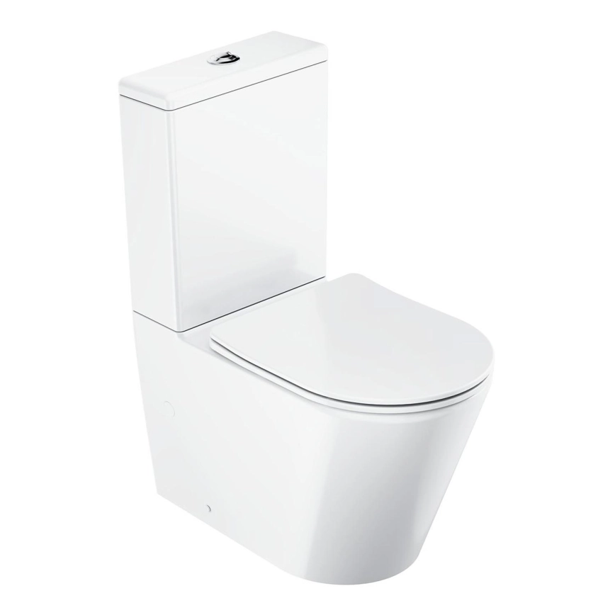 • Bela keramična izvedba daje kombiniranemu WC Elegant RimOff sodoben in čist videz, primeren za vsako kopalnico.
