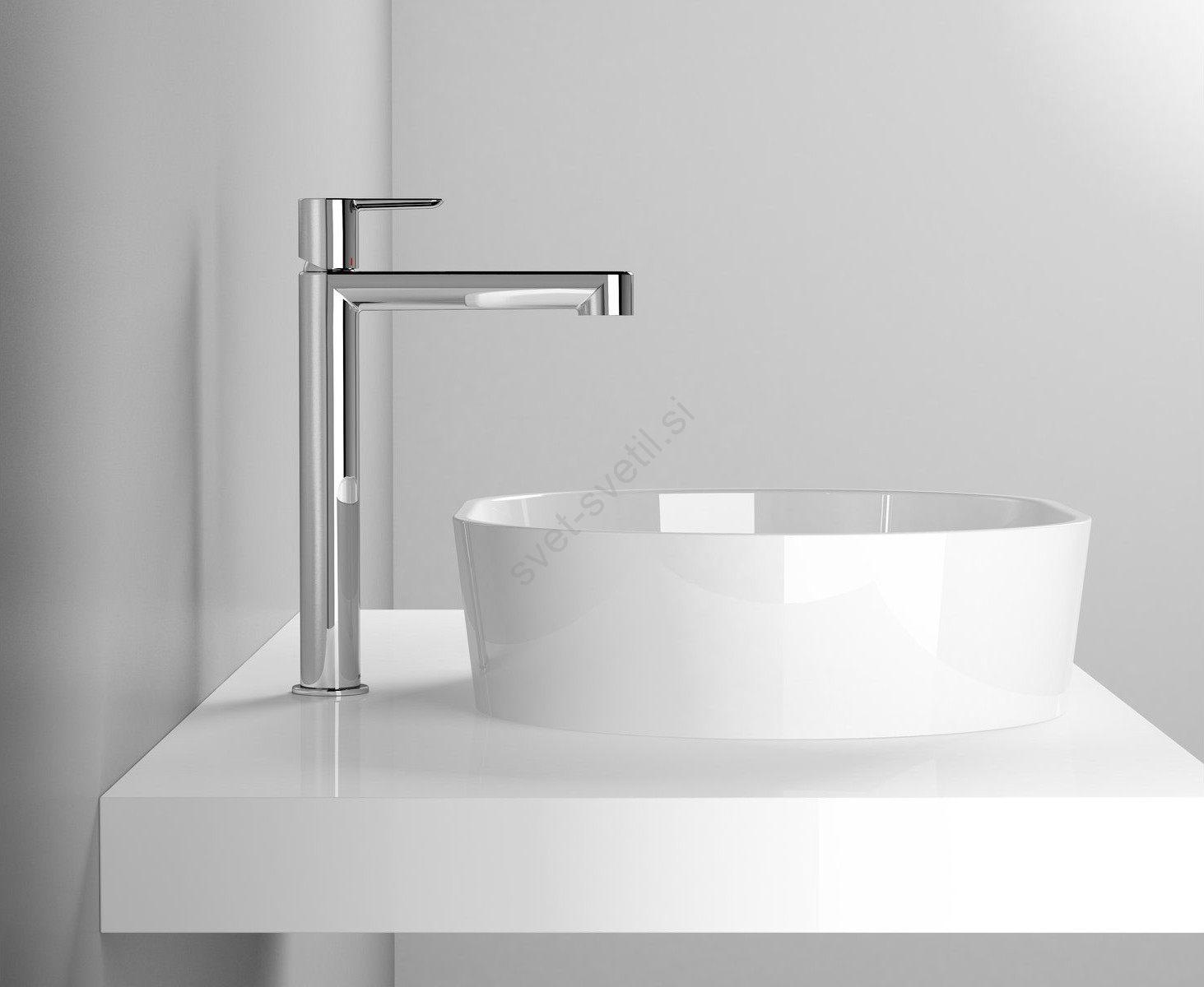 • Umivalni mešalnik Puri v sijajni kromirani izvedbi ima dodatno podaljšano višino 320 mm, idealen za umivalnike na pultu.