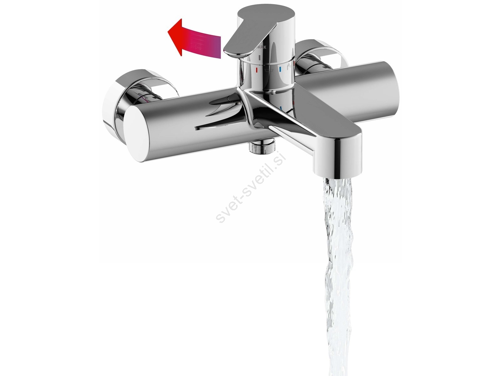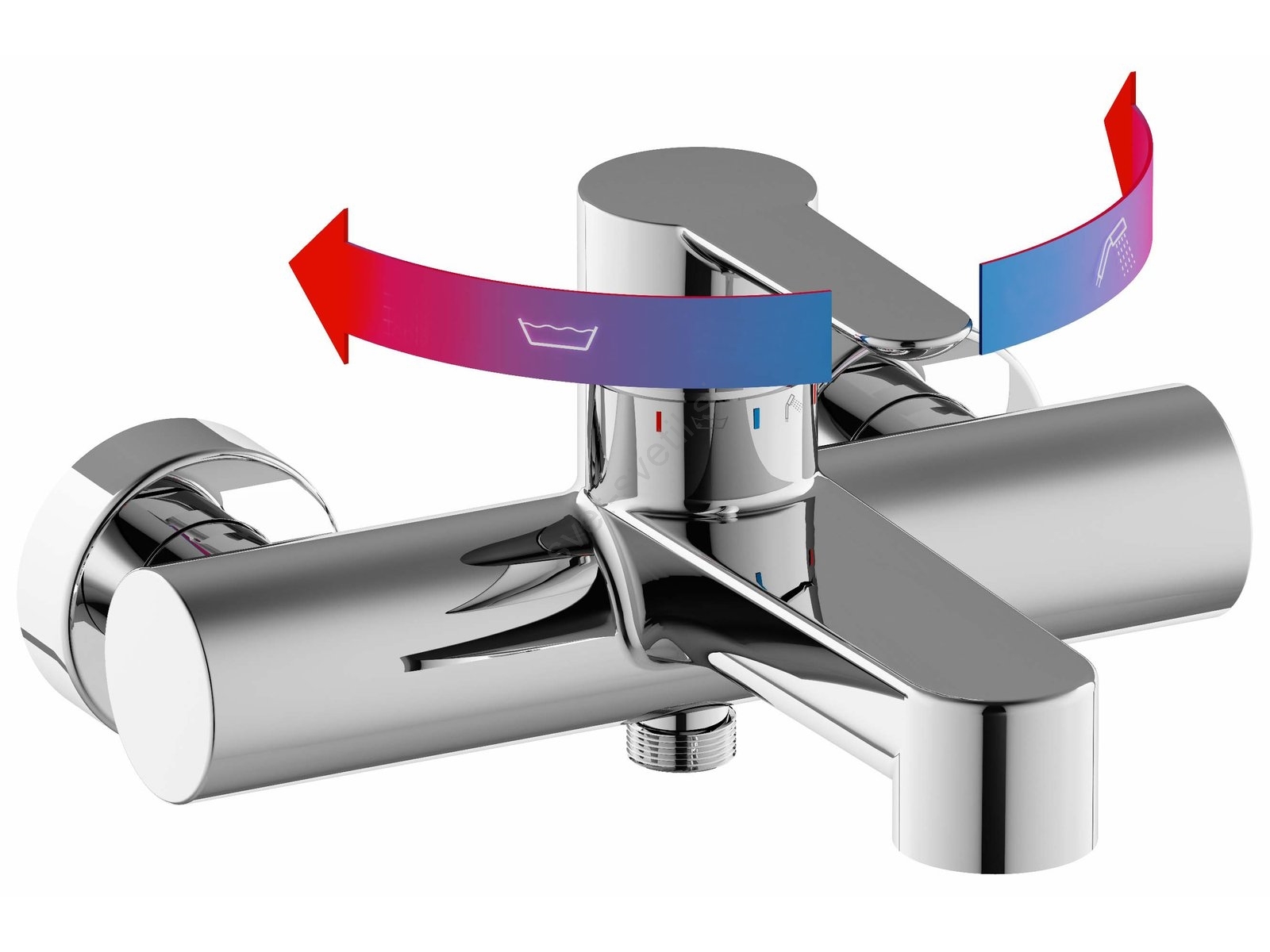 • Z gibanjem ročice v desno (tuš) ali levo (kada) se uravnava le temperatura vode, pretok pa ostaja stabilen.
