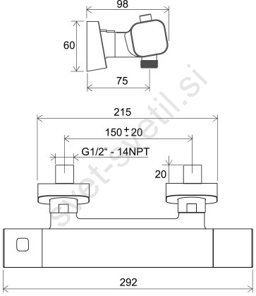 • Razmik 150 mm omogoča namestitev v vse vrste tuš kabin.