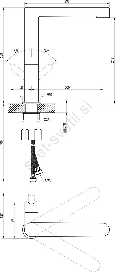 • Izvedba 360° - vrtenje izliva brez omejitev.