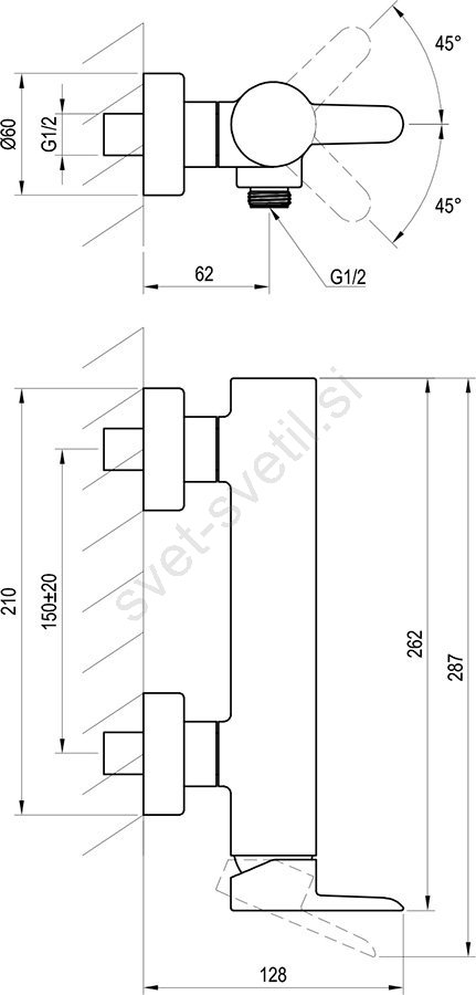 • Razmik 150 mm omogoča namestitev na vse tuš kabine.