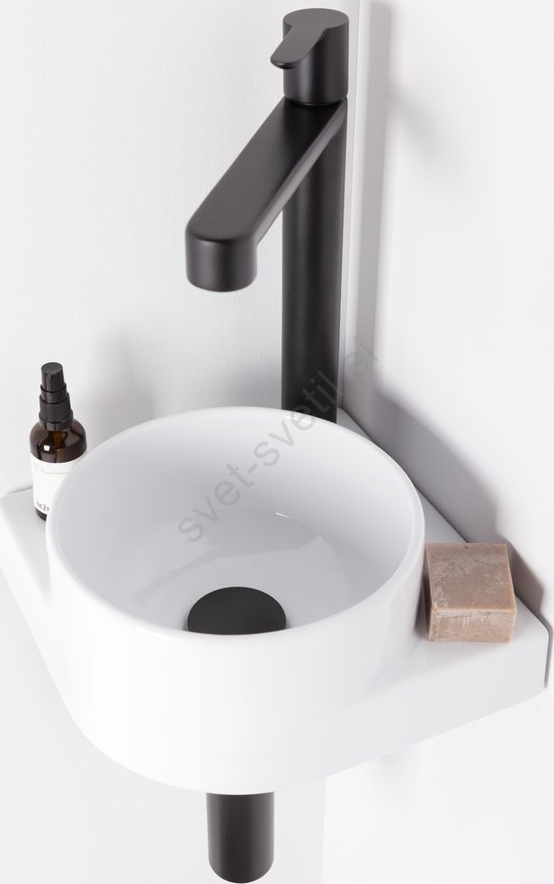 • Pipa za umivalnik Puri v matno črni izvedbi se ponaša z ekstra podaljšano višino 320 mm, idealna za umivalnike na pultu.