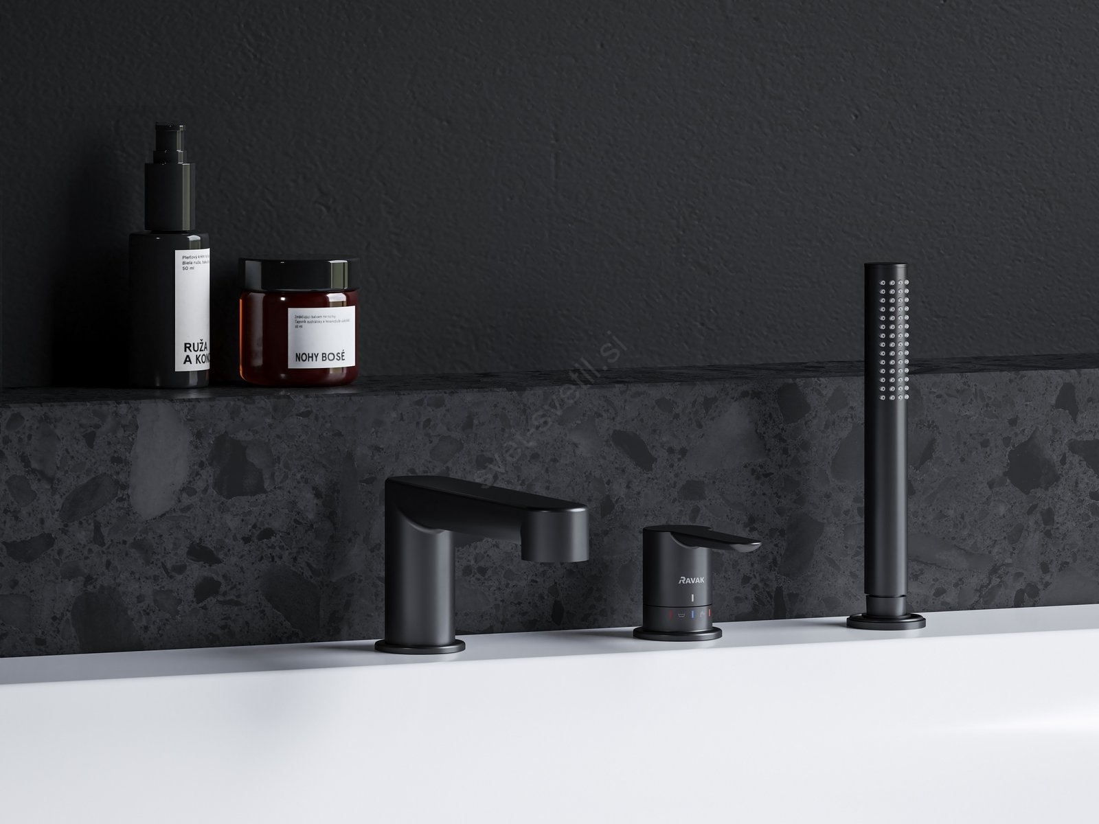 Ravak X070186 - 3-odprtinska kadna baterija PURI, črna