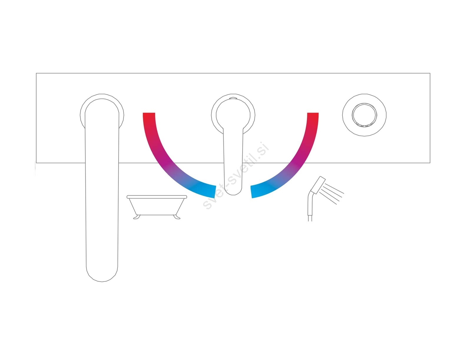 • S premikom ročice v desno (tuš) ali levo (kad) se uravnava le temperatura vode, pretok pa ostane konstanten.