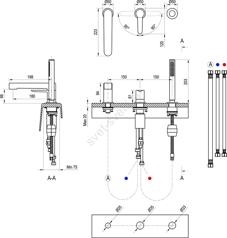• Ta armatura za kad s tremi odprtinami je eleganten dodatek vsake kopalnice.