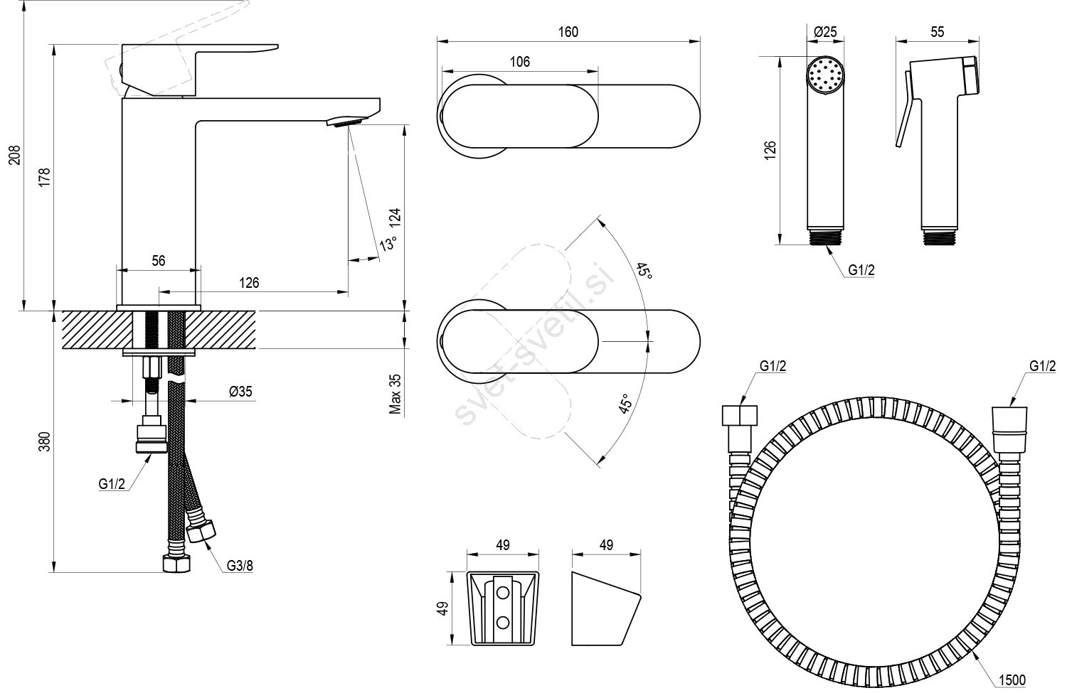 • Z višino 175 mm je primerna za večino standardnih umivalnikov in nudi dovolj prostora za udobno uporabo.