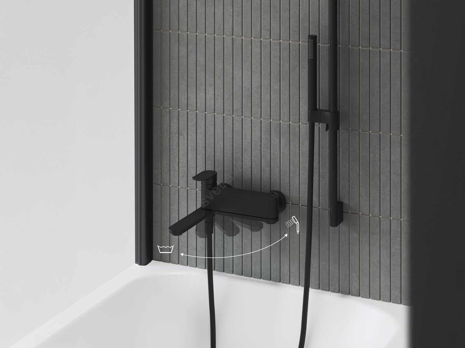 • Unikatno vrtljivo preklopno ročico združuje polnjenje kadi in preklop na tuš v enem elementu.