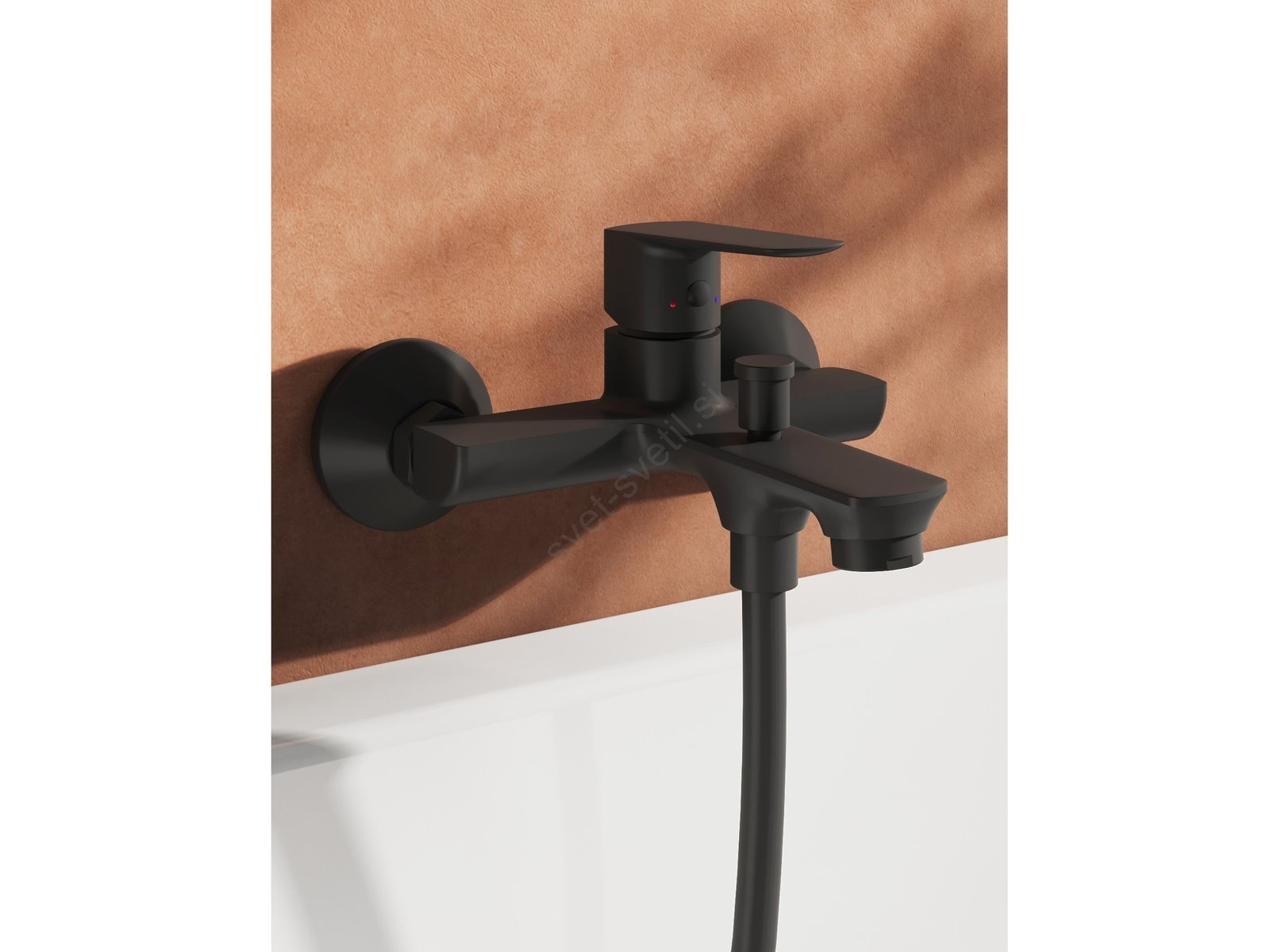 • Enoročna kopalniška armatura za kad v črni izvedbi.