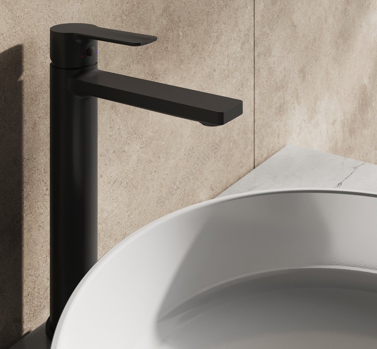 • Mešalnik za umivalnik Solar v mat črni izvedbi ima dodatno podaljšano višino 290 mm, idealen za umivalnike na pultu.