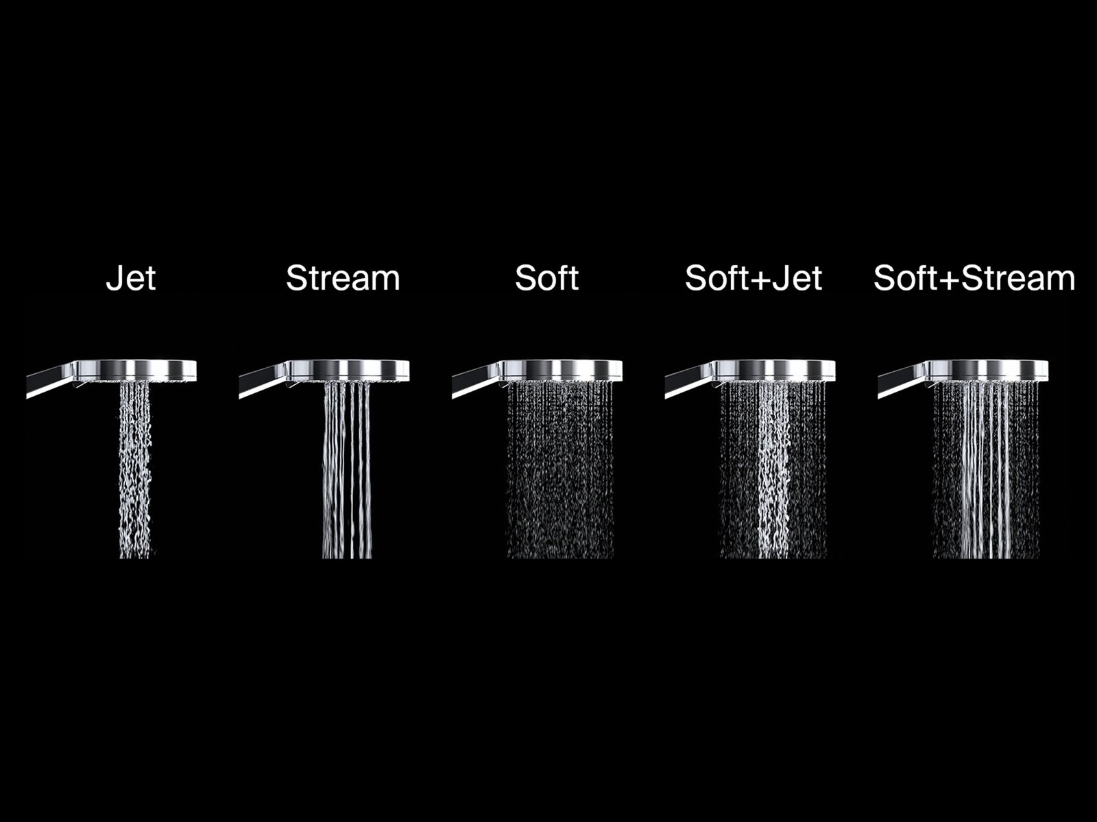 • Nastavitev Soft zagotavlja nežen, pomirjujoč vodni curek za sproščujoč tuš.
