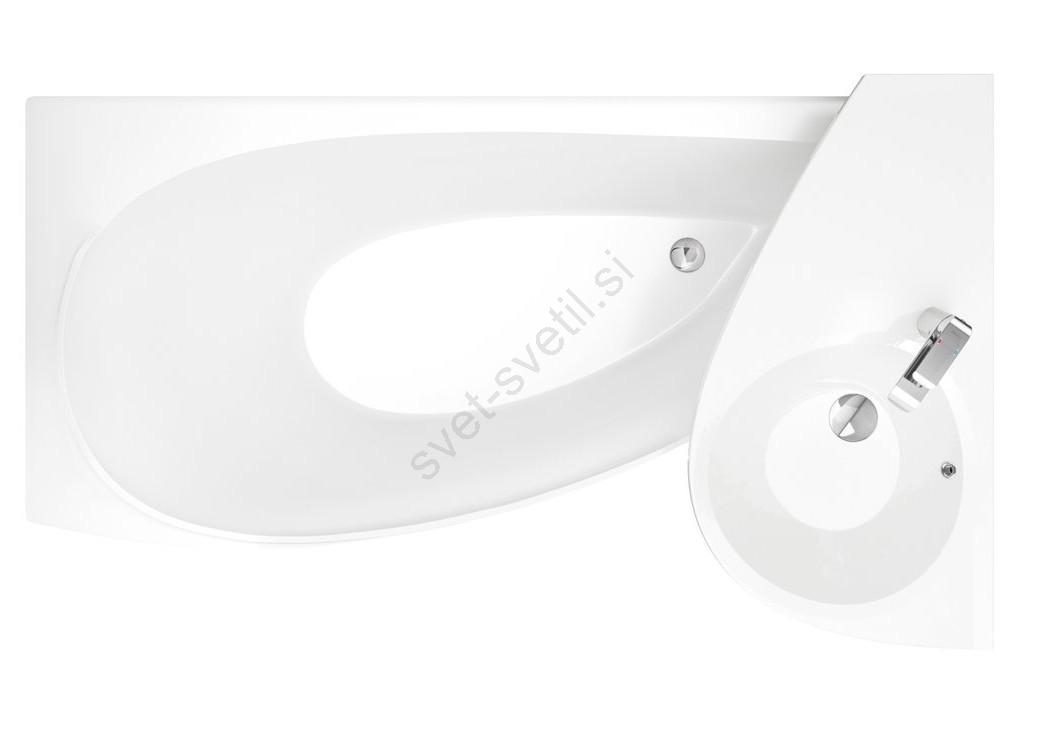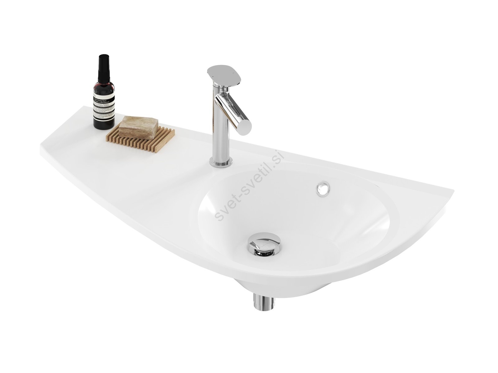 • Stenski umivalnik Avocado v levi izvedbi je zasnovan za prihranek prostora in sodoben videz tudi v manjših kopalnicah.