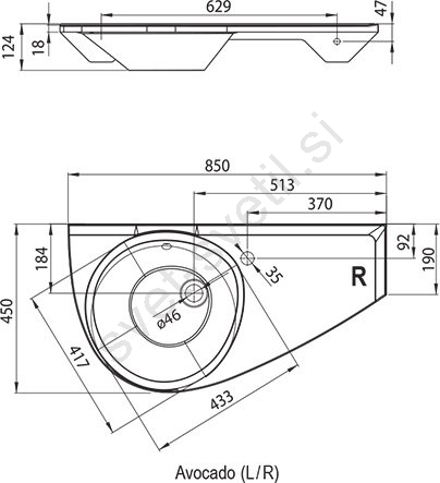 • Dimenzije umivalnika so 85 x 45 cm, kar omogoča njegovo namestitev tudi v ožjih prostorih, na primer nad kadjo Avocado.