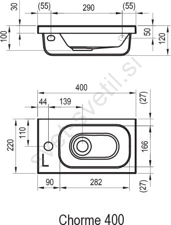Ravak XJGP1100000 - Viseči umivalnik CHROME 40x22 cm iz litega marmorja/bela