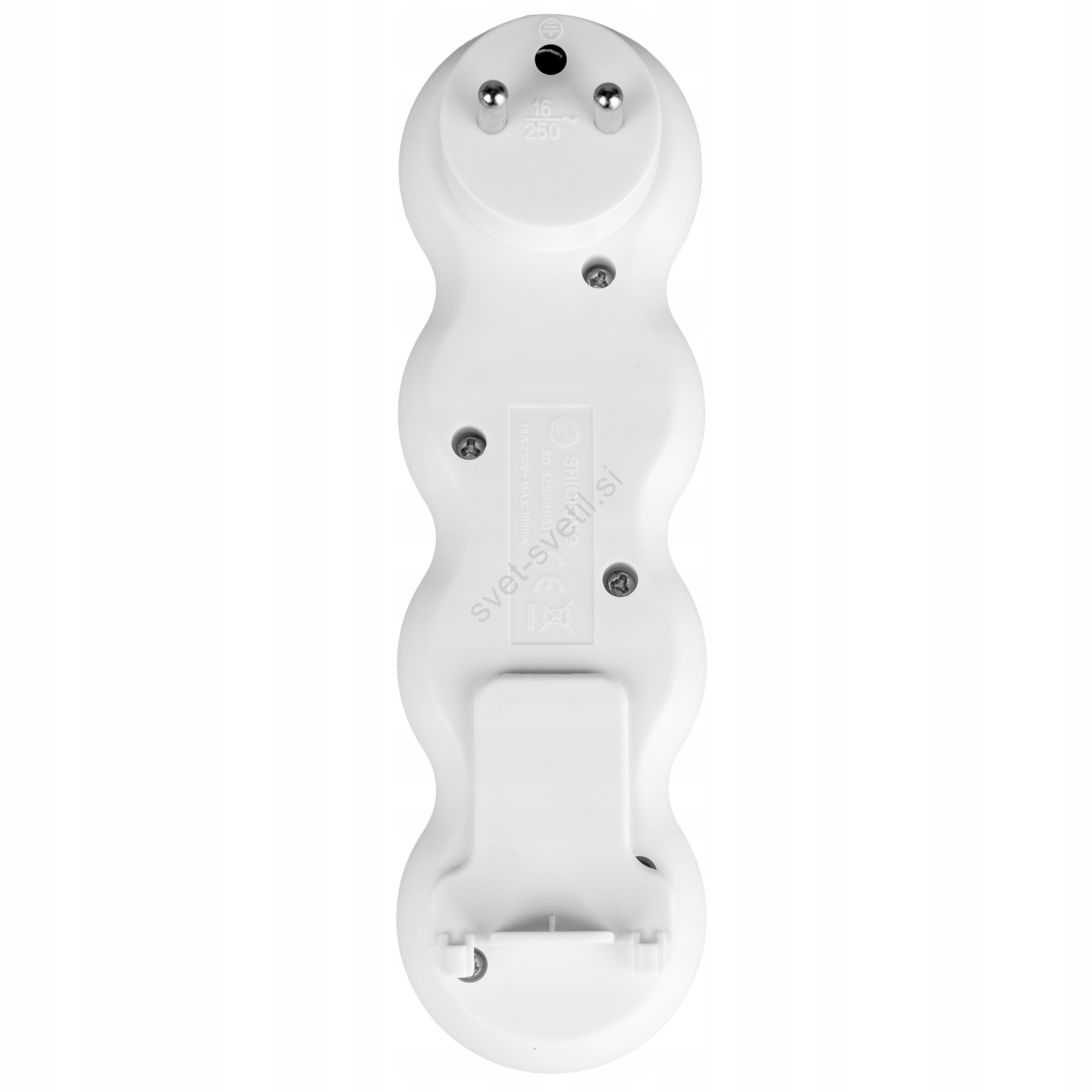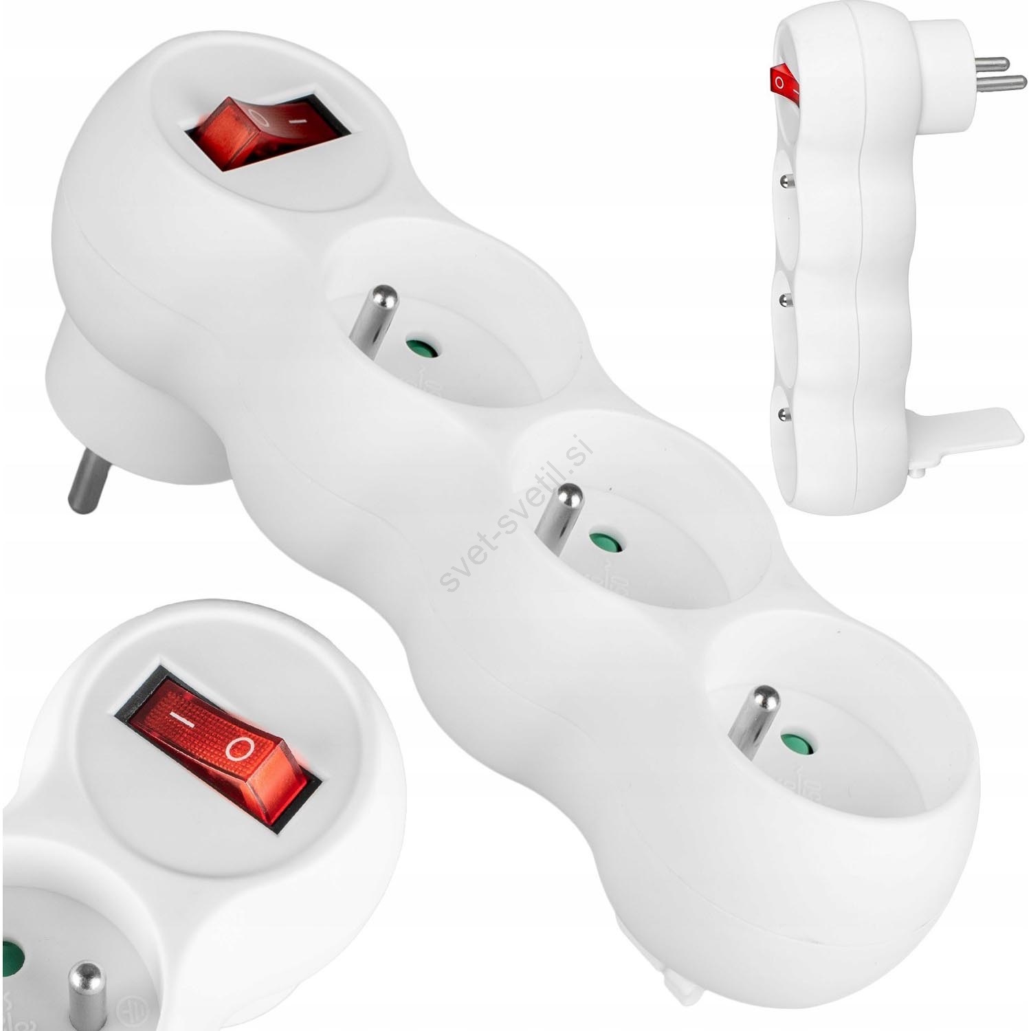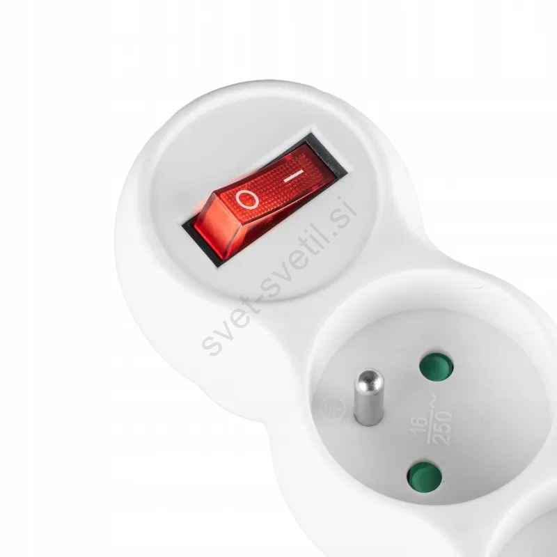 • Električni razdelilec s 3 ozemljenimi vtičnicami in podaljšanim ohišjem z montažnim podstavkom.