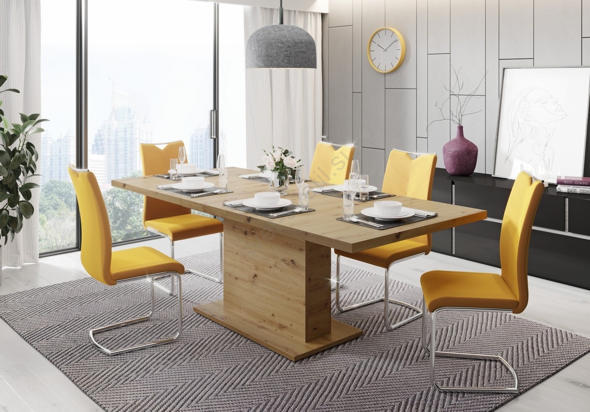 • Čiste linije in premišljena konstrukcija jo postavita v ospredje kot praktičen in eleganten osrednji element jedilnega prostora ter zagotavljata dovolj prostora za sedenje in obedovanje.