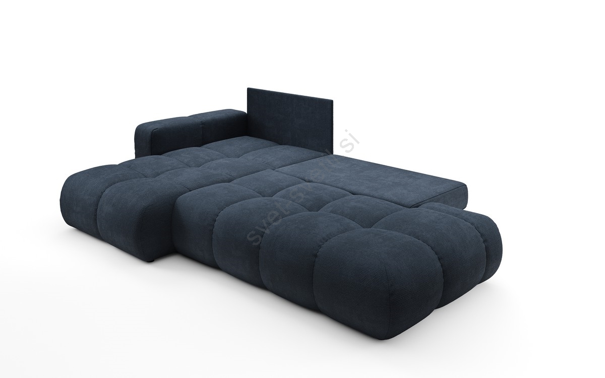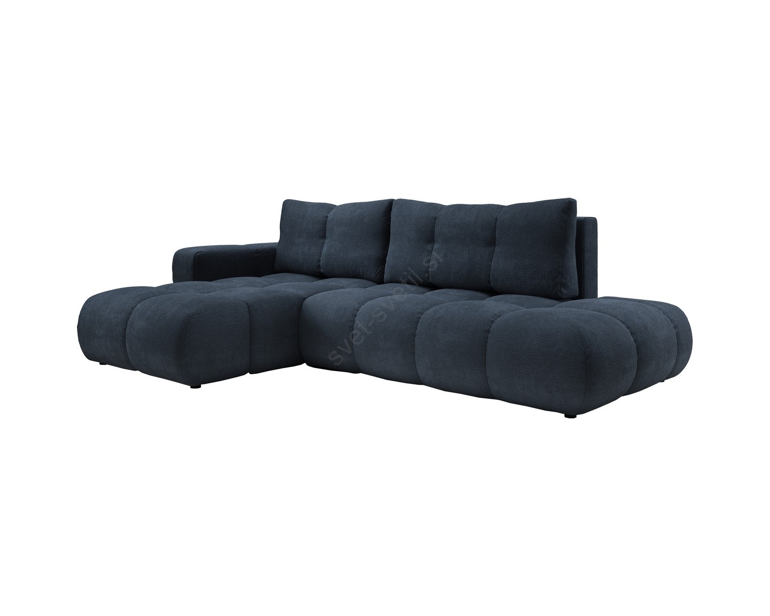 • Raztegljiva kotna oblazinjena sedežna garnitura ALMADA v obliki črke L, leva, z shranjevalnim prostorom, modra