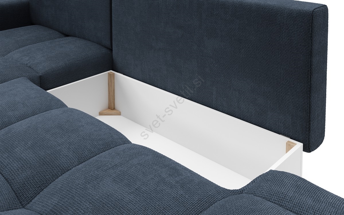 • Raztegljiva oblazinjena kotna sedežna garnitura ALMADA v L-obliki z prostorom za shranjevanje, desna, modra