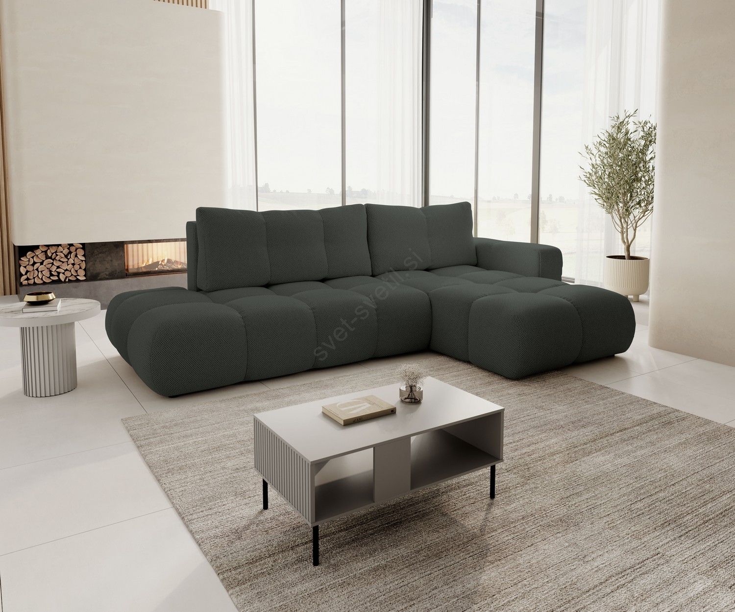 • Moderna raztegljiva kotna sedežna garnitura ALMADA (desni kot) je idealna izbira za vse, ki iščejo kombinacijo stila, udobja in praktičnosti.