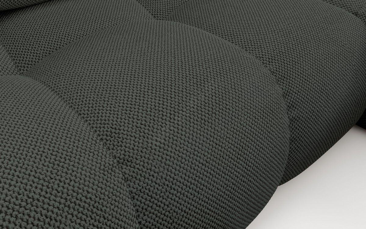 • Kakovostno oblazinjenje na zadnji strani omogoča postavitev sedežne garniture prosto v prostoru.