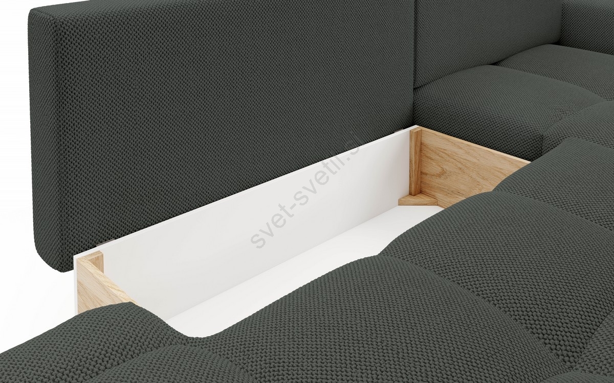 • Sedežna garnitura ima prostoren shranjevalni prostor za shranjevanje posteljnine in drugih sezonskih stvari.