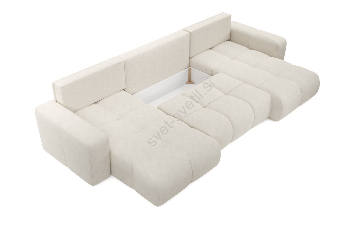 • Raztegljiva oblazinjena sedežna garnitura v U-obliki ALMADA z vgrajenim prostorom za shranjevanje, bež