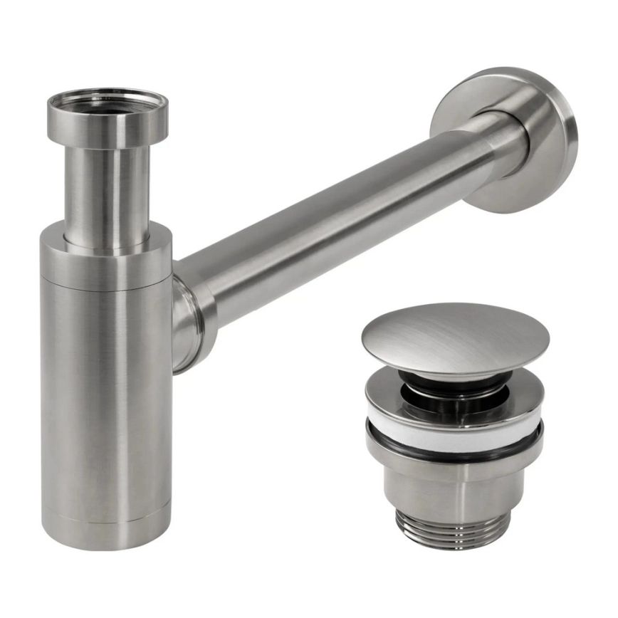 • Visoko kakovosten sifon iz medenine z univerzalnim umivalniškim odtokom s sistemom CLICK-CLACK.