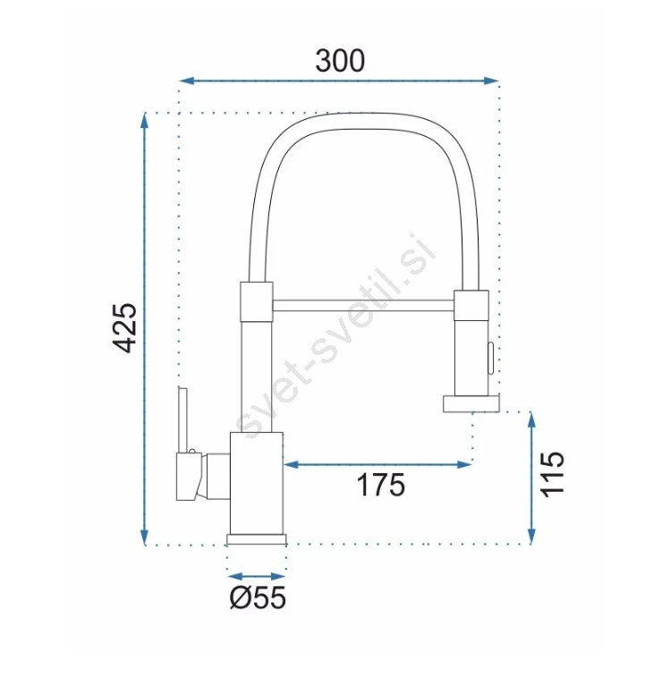 • Enoročna kuhinjska armatura za visok pritisk z vrtljivim izlivom.