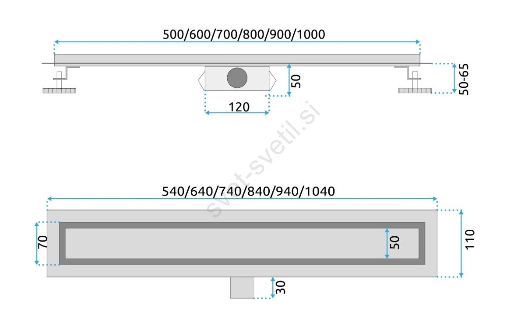 • Linijski odtok dolžine 80 cm v dekorju nerjavečega jekla.