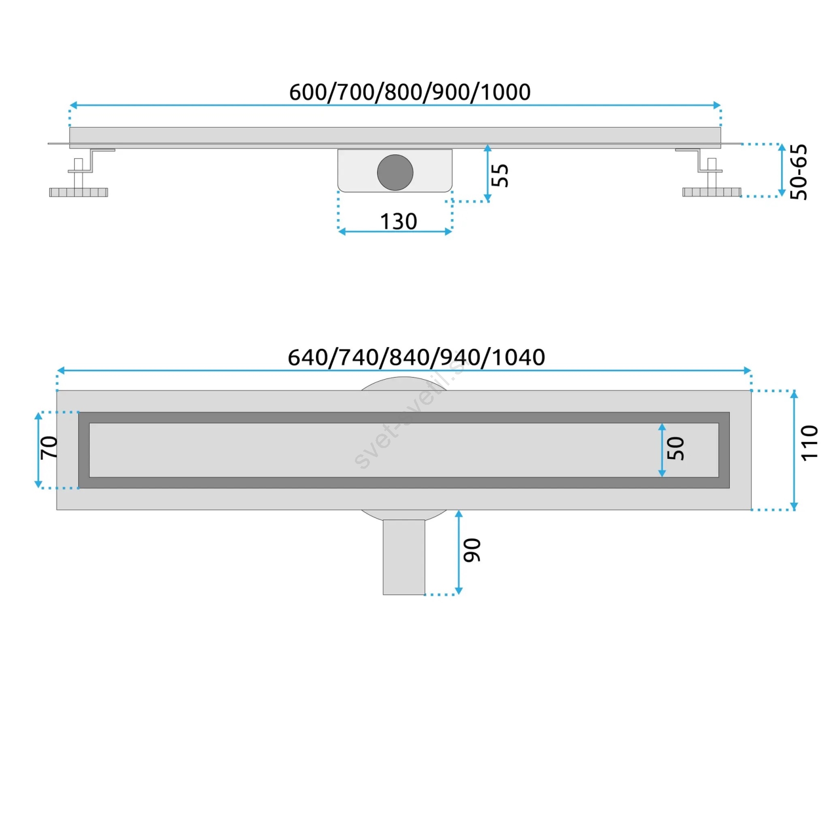 • Linijski odtok dolžine 60 cm v zlatem dekorju.