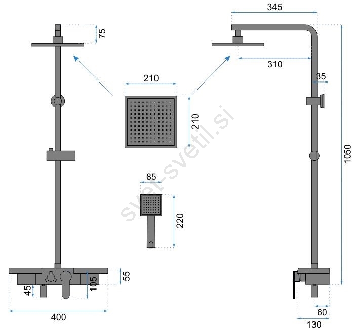 REA-P0636 - Komplet za tuš BRAVO v matni črni