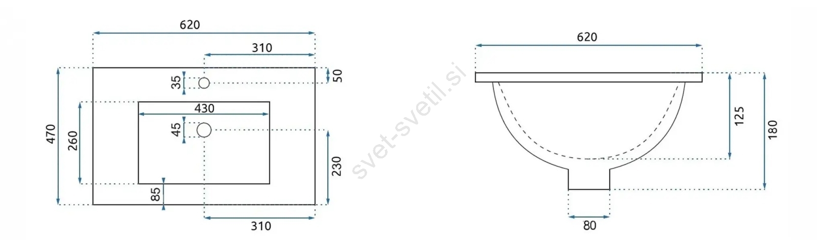 • Umivalnik je izdelan iz visokokakovostne sanitarne keramike.