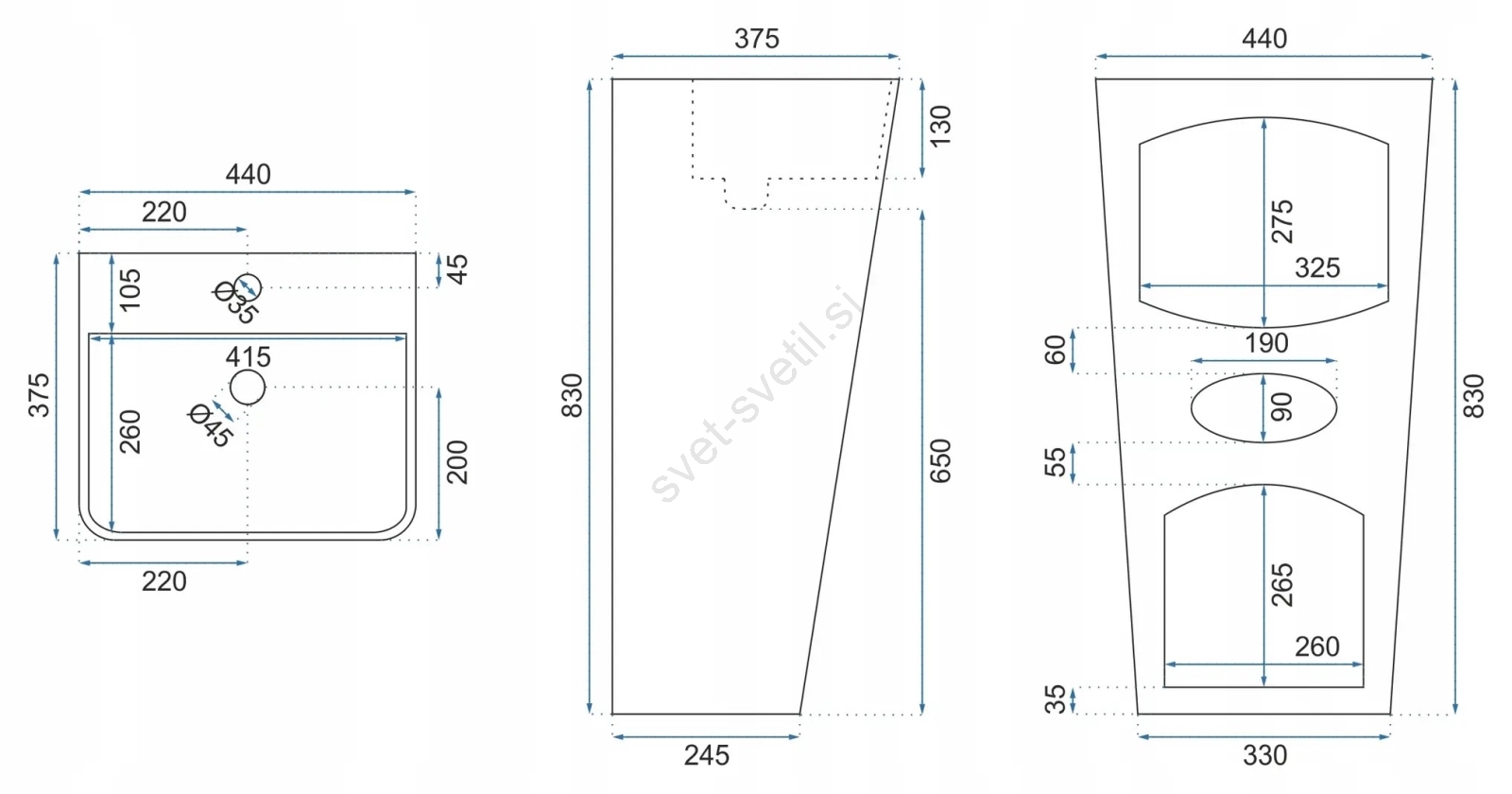 • Umivalnik je namenjen postavitvi na tla.