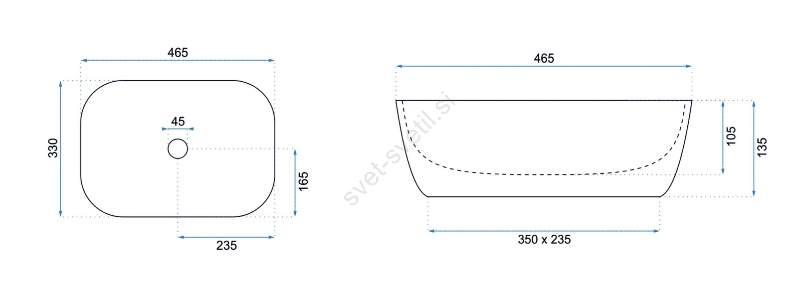 • Umivalnik je izdelan iz visokokakovostne sanitarne keramike.