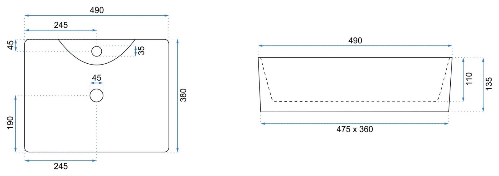 • Umivalnik je izdelan iz visoko kakovostne sanitarne keramike.
