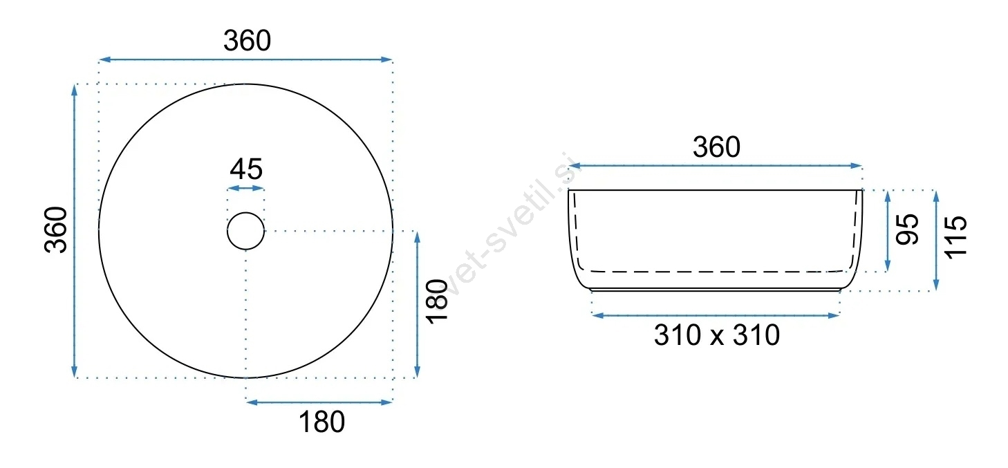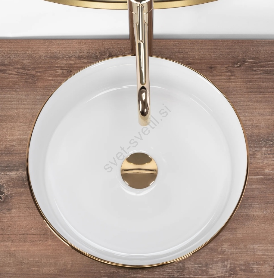 REA-U6630 - Pultni umivalnik SAMI premera 36 cm keramika/bela/brušeno zlato