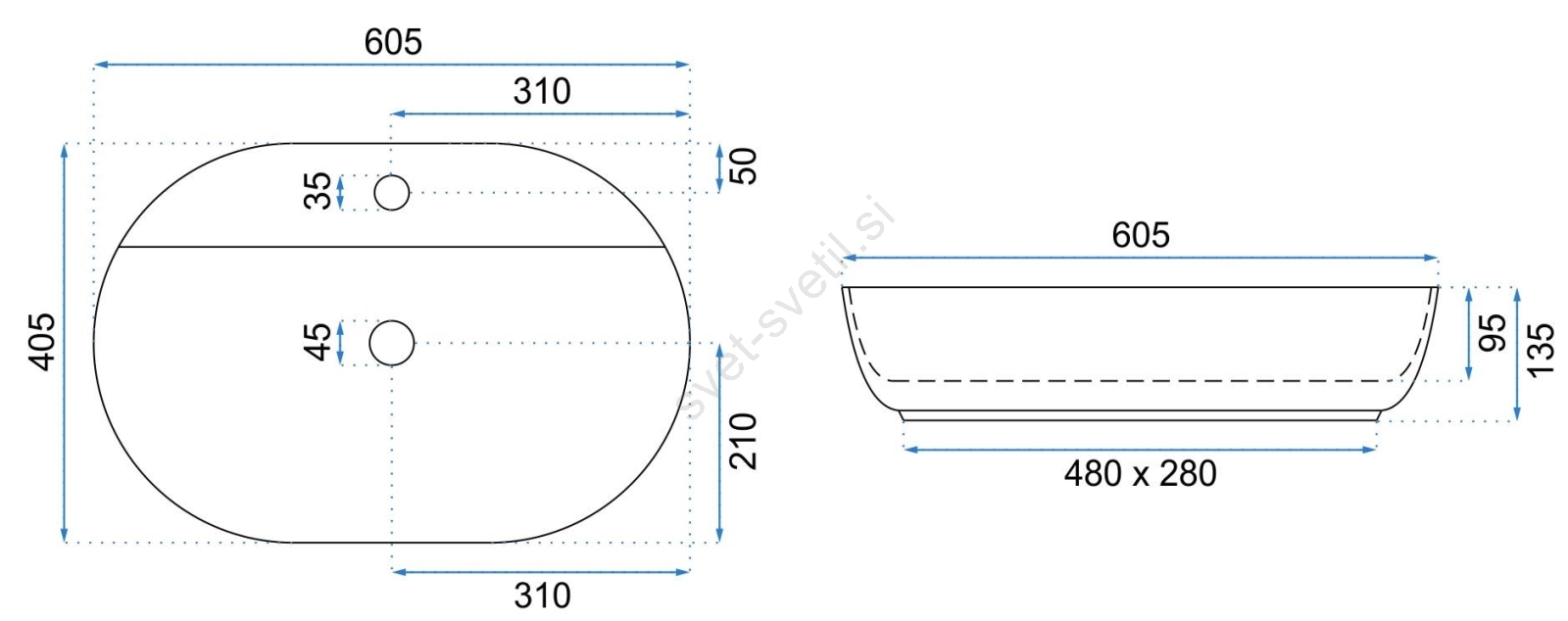 • Umivalnik je izdelan iz visokokakovostne sanitarne keramike.