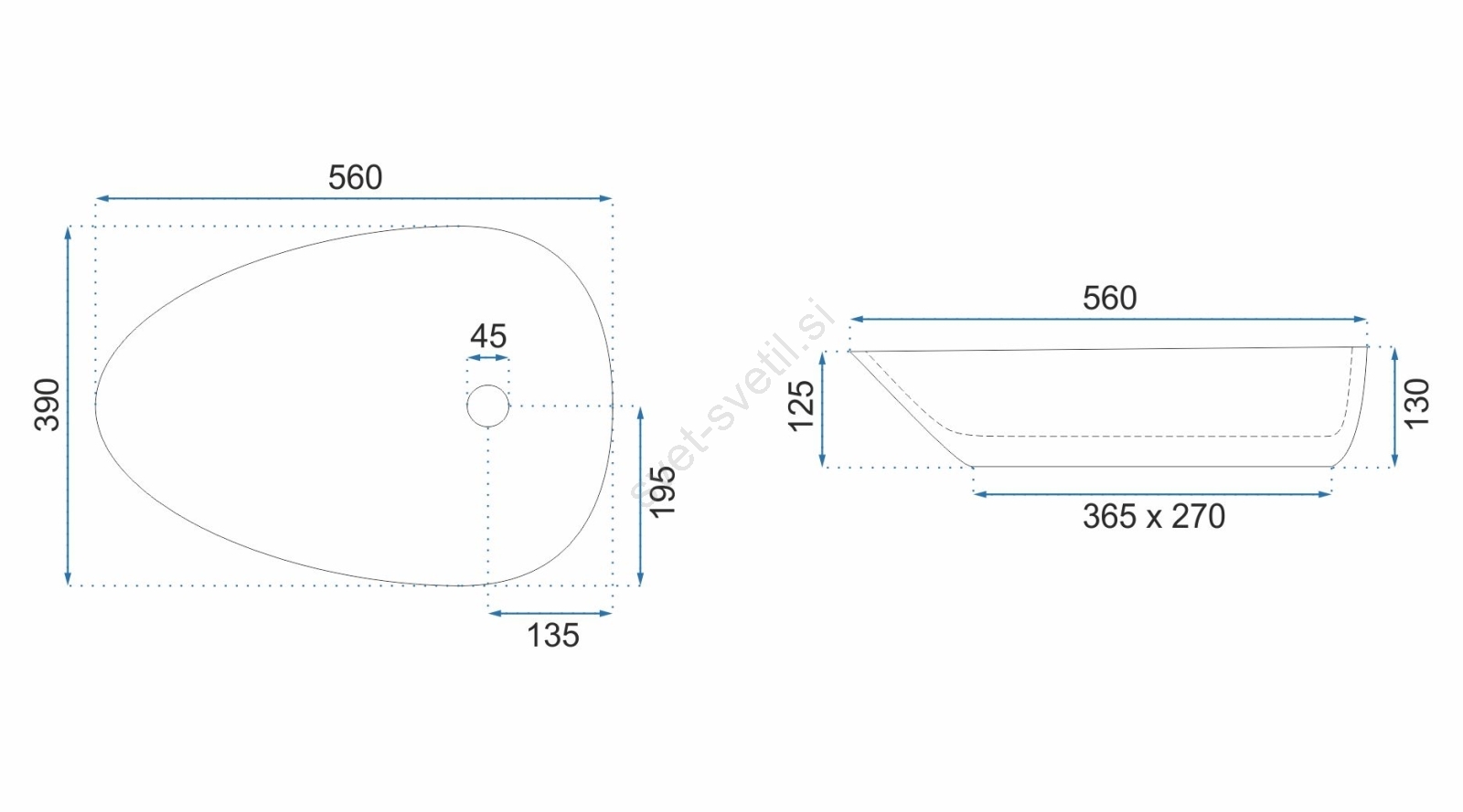 REA-U8536 - Umivalnik na pult GRETA 39x56 cm keramika/sijajna bela