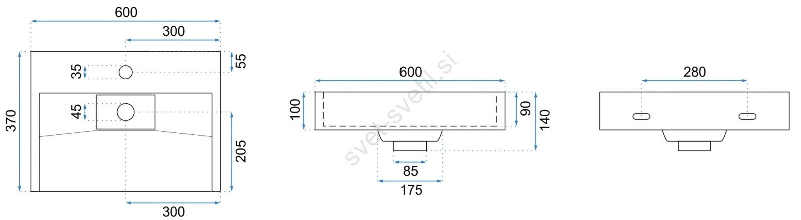 • Sodoben in eleganten umivalnik brez prelivne odprtine.
