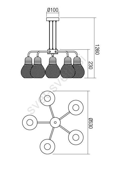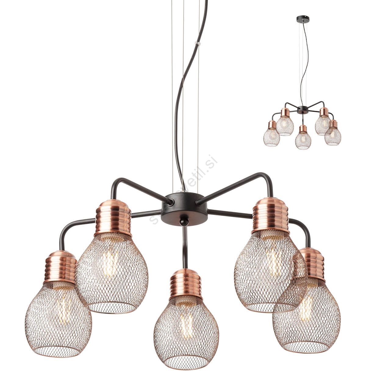 Redo 01-1580 - Viseči lestenec EDISON na vrvici 5xE27/42W/230V premer 53 cm črn/meden je značilen lep in funkcionalen dizajn. Za svetilko je primerna žarnica z vznožkom E27. Tukaj lahko kupite ostale žarnice po ugodnih cenah.