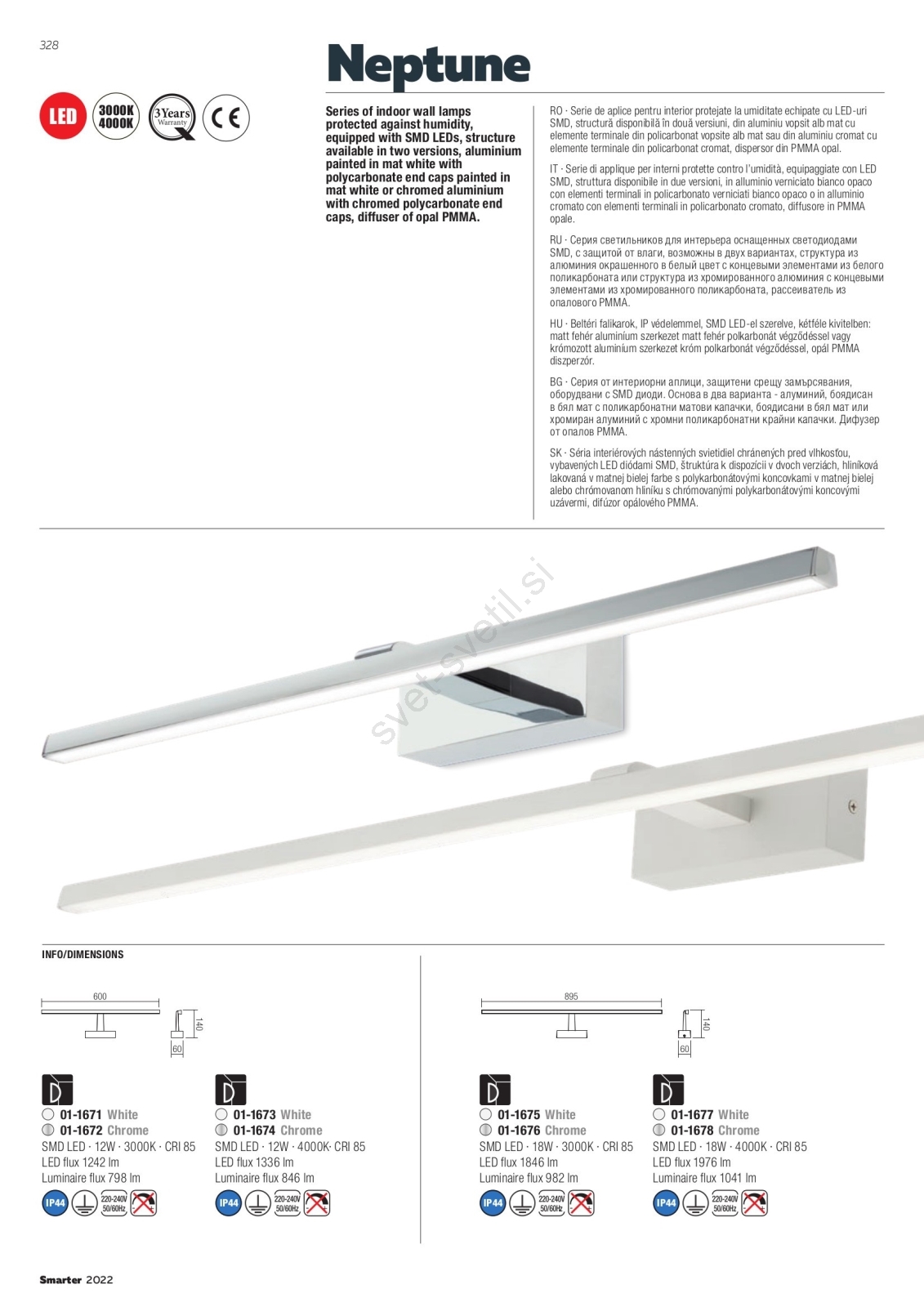 • Redo 01-1678 - LED kopalniška osvetlitev za ogledalo NEPTUNE LED/18W/230V 89,5 cm IP44 sijajni krom