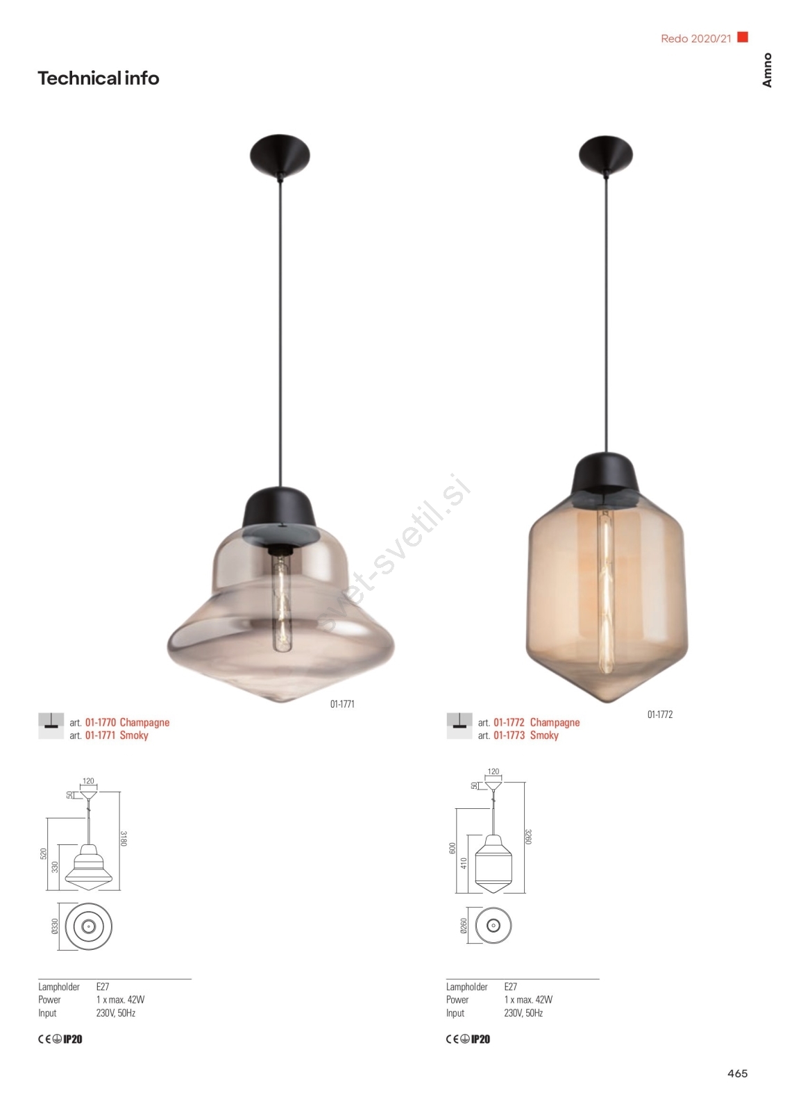 • Redo 01-1771 - Lestenec na kablu AMNO 1xE27/42W/230V premer 33 cm siv