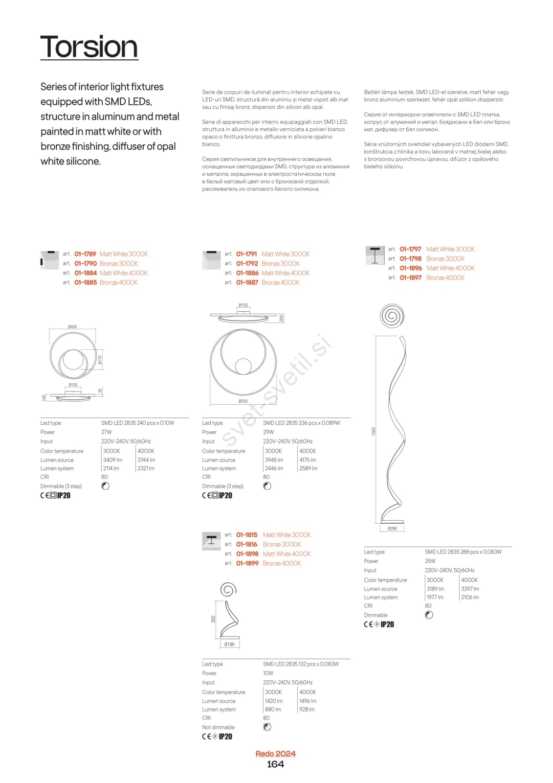 • Redo 01-1789 - Zatemnjiva LED stenska svetilka TORSION LED/27W/230V, premera 40 cm, bela