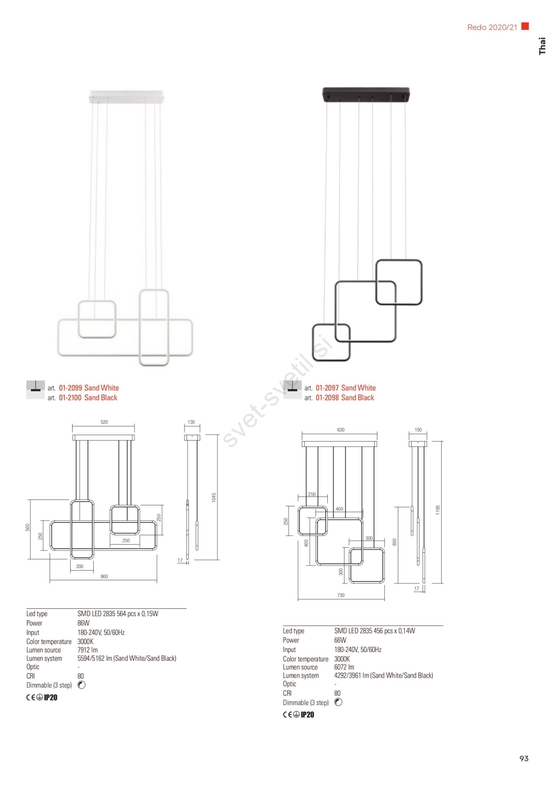 • Redo 01-2097 - LED Zatemnitveni lestenec na vrvici THAI LED/66W/230V 3000K bela