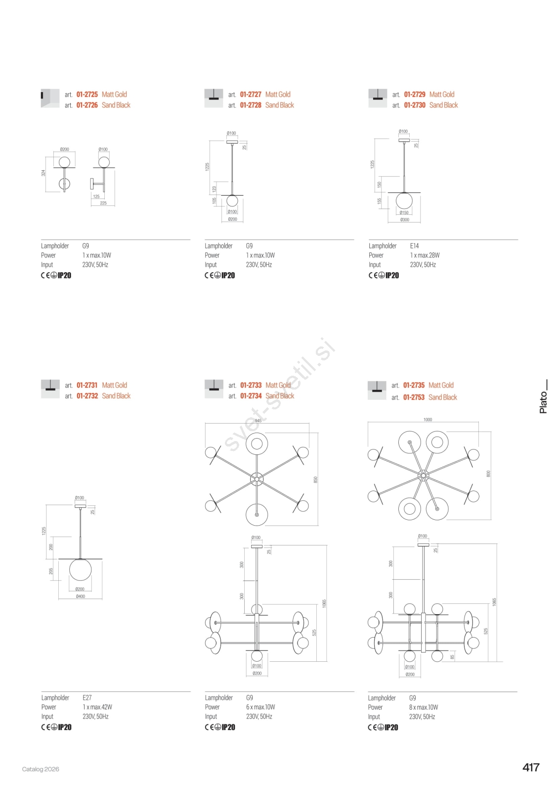 • Redo 01-2735 - Lestenec na palici PLATO 8xG9/10W/230V v zlati barvi